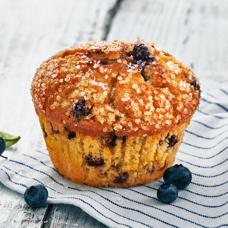 Moist and fluffy and topped with a sprinkle of sugar, our freshly baked Blueberry Muffin is perfect as a side or dessert – but big enough to be great on its own.
